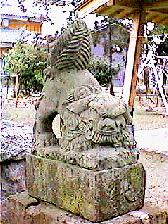 こま犬は2組。新しい方は平成4年作。見事なまでのステレオタイプ。型があるのかなぁ。でも,石なんだから型に流し込むわけでもないんだろうし。石工名が石亦とある。最近でもそういう名前でしごとするんだなぁ。