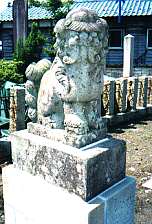 こま犬はデカい頭に短く太い足と大胆な爪,さらにぼわぼわしたしっぽが特徴的でユーモラス。かわいいのだ。明治33年の作だけれども,一番下の台座は白く新しい。それもそのはず平成12年4月に改修と書いてある。この神社へ行ったのは平成12年の6月だから,2ヶ月前。このこま犬を残してくれたというのはうれしい。
