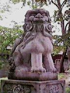 こま犬は,玉をくわえてるタイプで,太め。特に足太いぞ。ルーズソックスか?女子高生じゃないんだから。