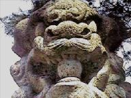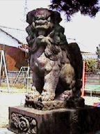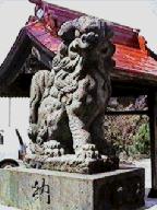 なんか貧相な鳥居。こま犬の方もちょっと見たところでは変わった感じしないんだけど,阿像の方が小さな玉くわえていて,初めて見るタイプ。見えにくいんで,アップでどうぞ。