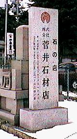 菅井石材店は石のお店で,店頭には色々な石製品が置いてあるわけなのだけど,この看板はいかがなものかと思ったりするのでした。