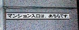 これは,とある雑居ビルの壁面につけられていたプレートなのでした。おそらくは,ある階より上がマンションになっていて,店舗の入り口と住居の入り口が別になっているのだと思われるわけですが,「あちら」というのがどちらなのかわからないのでした。