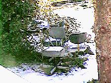 「緑の会物件」の公園には,もちろん普通のベンチもあるわけですが,片隅には青空会議室もあったりするのでした。事務用のイスが3つ置かれていて,写真では見えにくいですが,簡単なテーブルみたいなものも置いてあり,その上には資料のようなものが置いてある。
