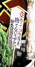 JR新大久保駅近くのガード下の「ゴミ捨てるなカンバン」。
