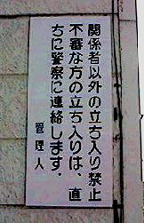 私もデジタルカメラを持ってこのアパートの前にいるわけで,不審人物といわれてもしょうがない。「直ちに警察に連絡」される前に,写真を撮ってそそくさと逃げ帰ったのでした。
