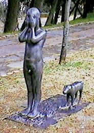 これは寺尾中央公園という公園にある,「まぁだだよ」というタイトルの彫刻なのでした。まぁ,こういう「芸術作品」をとりあげるのは,この路上観察ファイルの本義ではないのだけど,やはり「笑っちゃうもの」というのはとりあげてしまうのでした。