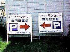 スナック・サンセットの駐車場はいったいどこなのかと,思ったのでした。二つの看板が責任逃れをして,駐車場はあっちです,いやいやホントはあいつの方なんですよと,なすりあいをしているように見えたのでした。