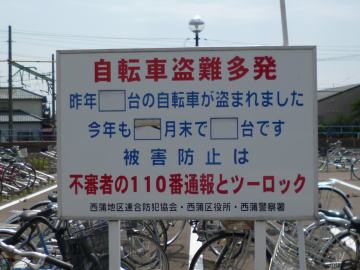 しかし,あらかじめ盗難があることを前提としてカンバンを立てているというのもどうなのかと,思ってしまうところではあるんでした。盗難がなくなることはないという信念があるのかと。