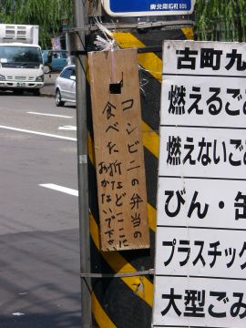 ゴミ置場だからと言って,他所の人間が勝手に食べカスとか置いていかないでほしいということだと思われますけれども,「折」という書き方がちょっと品がいいなぁと,思ったんでした。