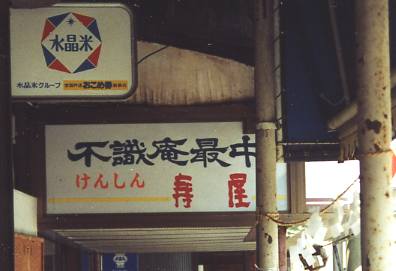 そんなわけで,物件の写真。どのあたりが「あいまい物件」なのかというと,このカンバンのお店の名前,私の目(というかノーミソ)には「曖昧図形」として映ってしまったわけなんでした。